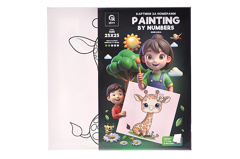 Set for painting by numbers 25x25 cm QB900-009/QB901-009 "Giraffe" with a wooden stand qbee