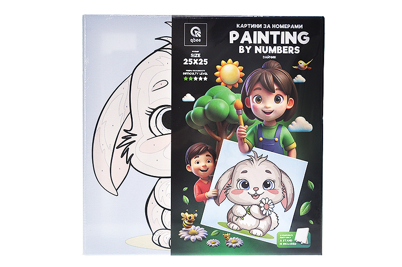 Set for painting by numbers 25x25 cm QB900-006/QB901-006 "Bunny" with a wooden stand qbee