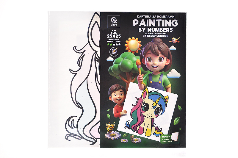 Set for painting by numbers 25x25 cm QB900-012/QB901-012 "Rainbow Unicorn" with metallic paints, with a wooden stand qbee