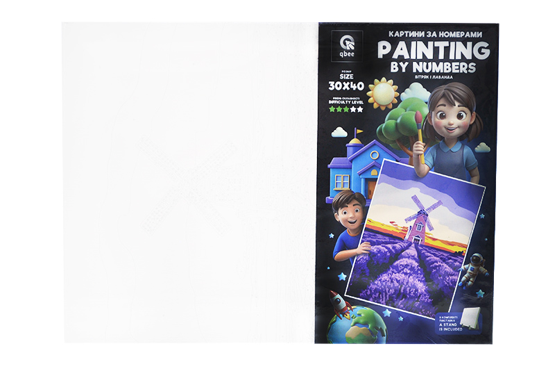 Kit for painting by numbers 30x40 cm QB900-062 "Windmill and lavender" with a wooden stand qbee