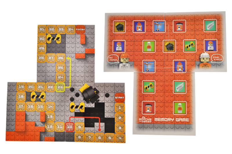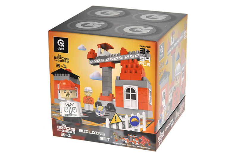 The "Blocs&Steps" series from qbee is not only about the constructor. In this series, in addition to blocks, you get a themed walking game and a memory game.