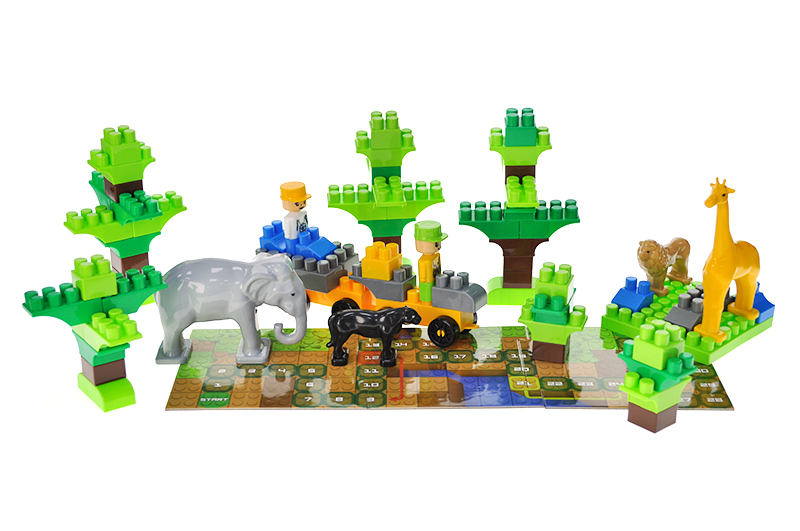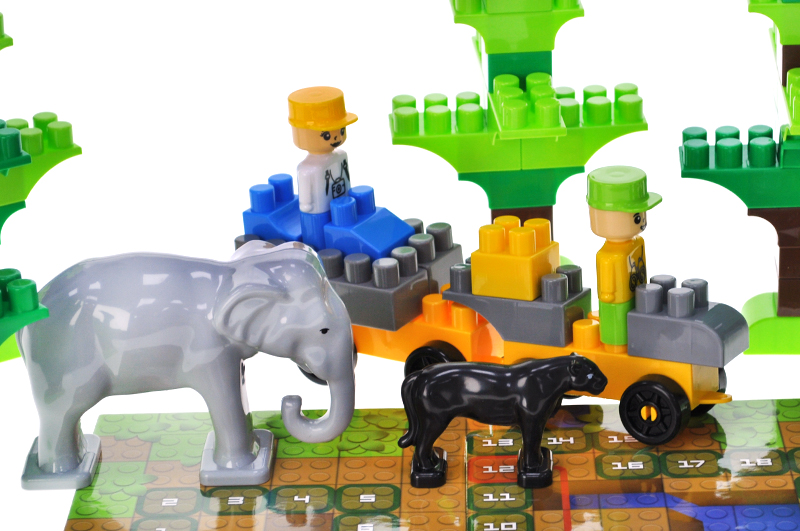 Constructor block QB300-006 "Block&Steps: Adventures in Safari" + walker and memory game 3 in 1, 89 children. qbee