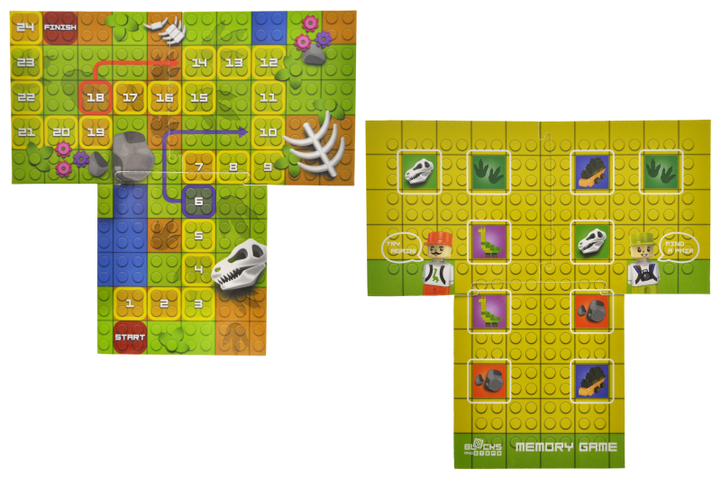 The "Blocs&Steps" series from qbee is not only about the constructor. In this series, in addition to blocks, you get a themed walking game and a memory game.