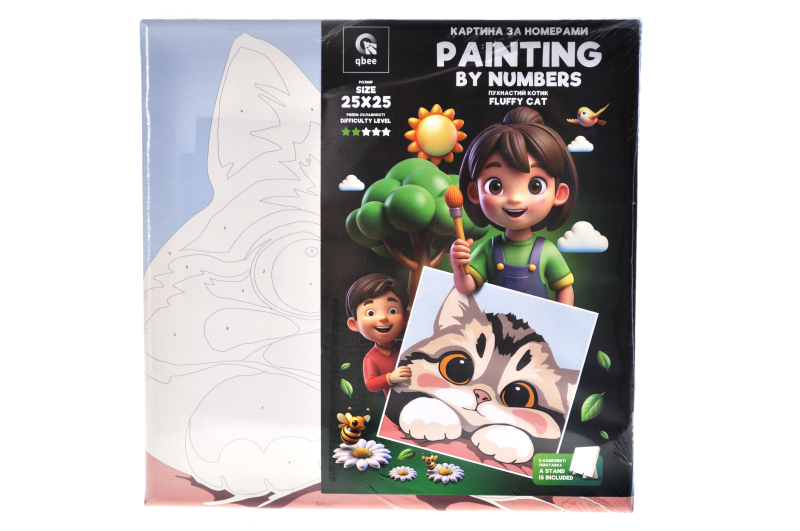Kit for painting by numbers 25x25 cm QB900-080 "Fluffy cat" with a wooden stand qbee