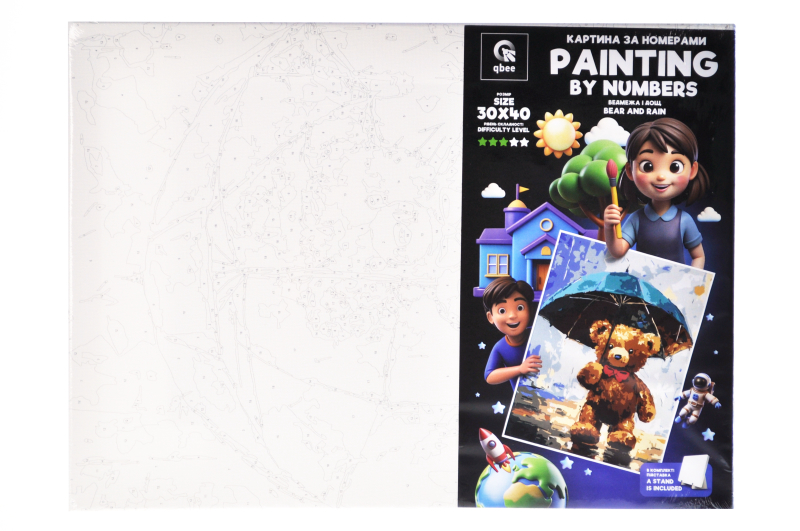 Set for painting by numbers 30x40 cm QB900-083 "Bear and Rain" with a wooden stand qbee
