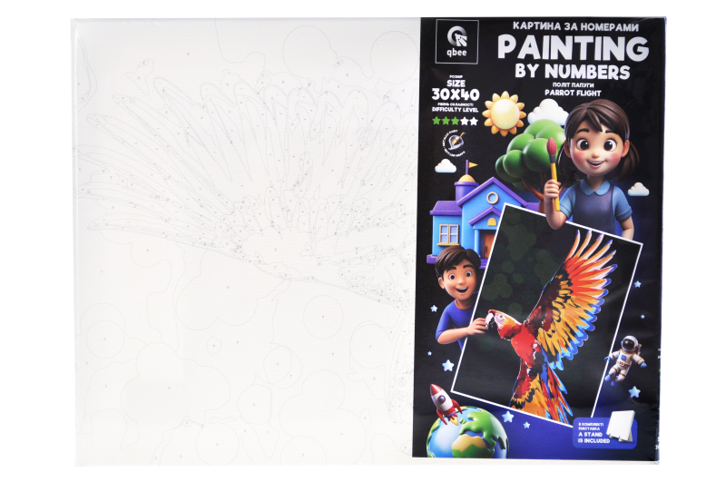 Kit for painting by numbers 30x40 cm QB900-085 "Flight of the Parrot" with a wooden stand qbee