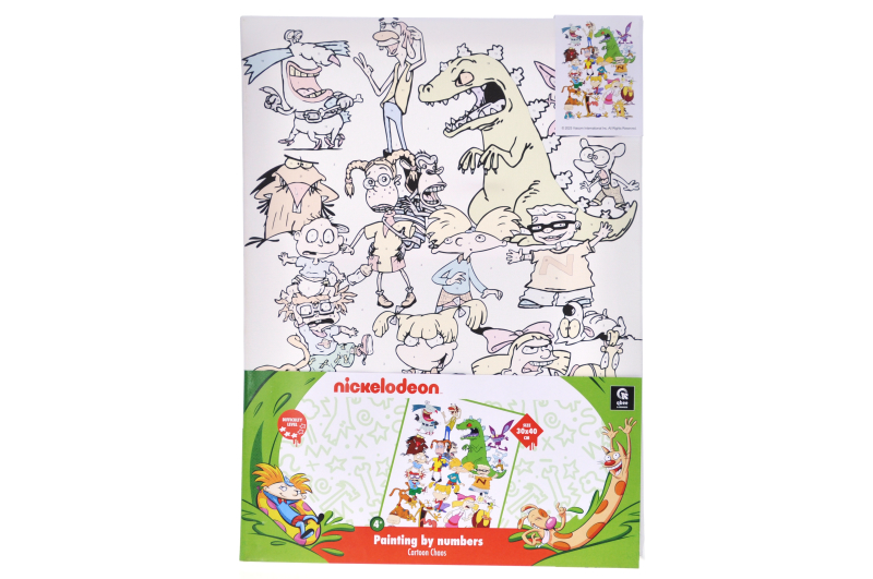 The cartoon mayhem is inspired by iconic 90s Nickelodeon characters like the Rugrats and other classic heroes. Rich colors and dynamic scenes create a fun and energetic atmosphere for coloring.