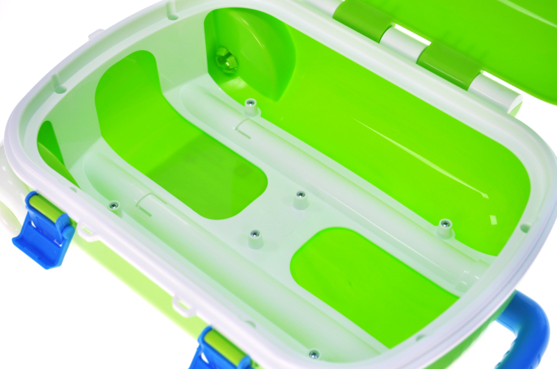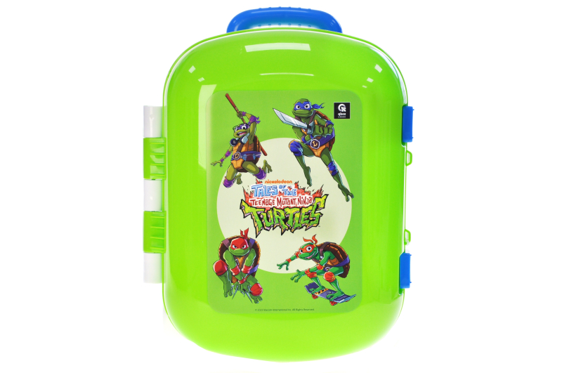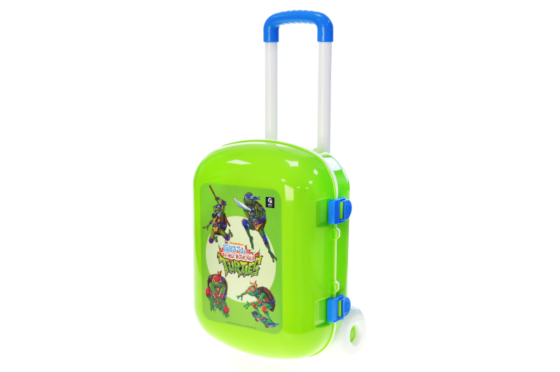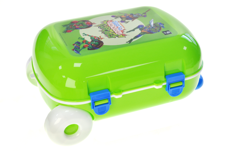 The Teenage Mutant Ninja Turtles suitcase from qbee combines stylish design with practicality. Made of durable plastic, it can withstand active games and frequent trips. An adjustable handle and a cover that can be fixed in several positions ensure ease of use. Reliable clasps keep things inside, and large wheels make it easy to roll the suitcase. The bright green color and the sticker with the characters of the Teenage Mutant Ninja Turtles make the suitcase attractive to children. She will be a great companion for games and travels. The child will be able to plan his own adventures and take his favorite toys with him wherever he wants.