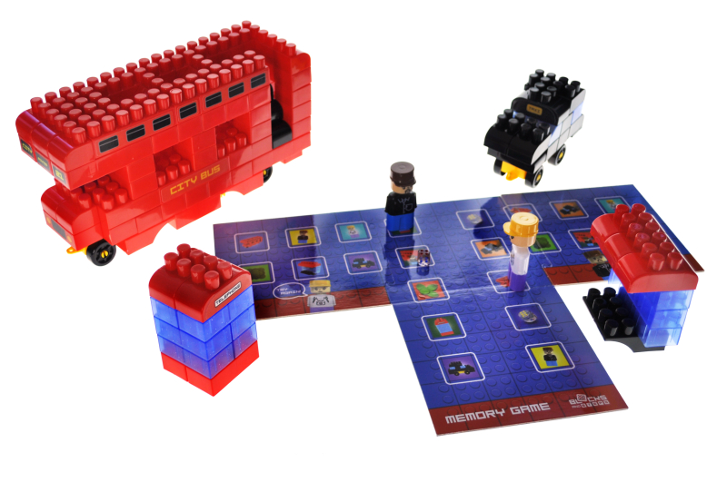 The "Blocs&Steps" series from qbee is not only about construction. In each set, in addition to the blocks, you get a themed walking game and a memory game.